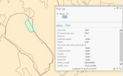 MERK: For områder som er angitt som eksisterende bebyggelse kan i realiteten være ubebygd. I dette tilfelle vil det være lettere å redigere flatene i ADV, hvis en setter disse som framtidige områder.