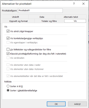 I dette trinnet så skal tabell 1 eksporteres, og den skal inneholde følgende kolonner: